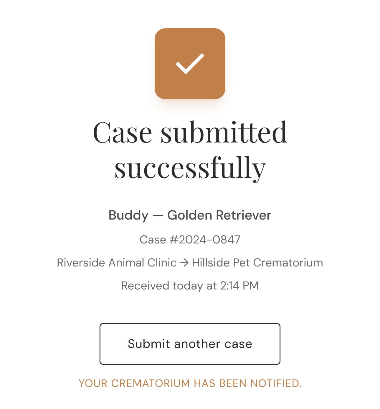 Vesper gives crematorium operators a verified chain of custody and grieving families the peace of knowing their pet is safe.